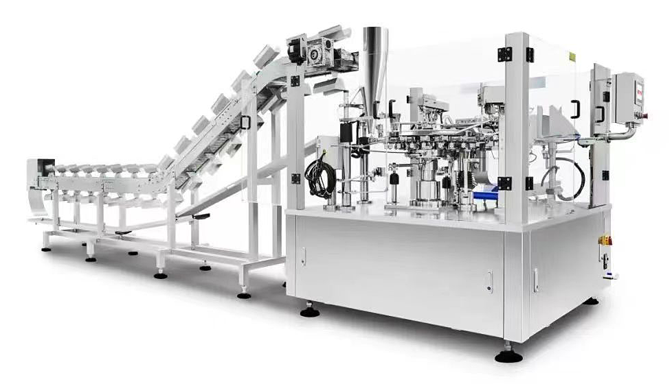 預(yù)制袋給袋式包裝機(jī)**:采用預(yù)先制作好的包裝袋,通過機(jī)械手臂將袋子抓取、打開,然后進(jìn)行物料充填和封口。這種包裝機(jī)袋型美觀、精度高,且更換袋型方便,適合大規(guī)模、多樣化的包裝需求。 ### 特點(diǎn) - **自動(dòng)化程度高**:可實(shí)現(xiàn)物料混合、計(jì)量、包裝等工序的自動(dòng)化運(yùn)行,減少人工操作,提高生產(chǎn)效率,降低勞動(dòng)強(qiáng)度。 - **包裝精度高**:采用先進(jìn)的計(jì)量裝置和控制系統(tǒng),能夠精確控制物料的填充量,保證包裝重量或體積的準(zhǔn)確性,誤差范圍小。 - **可擴(kuò)展性強(qiáng)**:可根據(jù)生產(chǎn)需求增加配料系統(tǒng)、貼標(biāo)機(jī)、噴碼機(jī)、金屬探測器等輔助設(shè)備,實(shí)現(xiàn)更完善的包裝功能,滿足不同客戶的需求。 - **衛(wèi)生安全**:與物料接觸部分采用304/316不銹鋼或食品級塑料材質(zhì),符合食品衛(wèi)生標(biāo)準(zhǔn),確保產(chǎn)品不受污染。 ### 主要結(jié)構(gòu) - **物料儲(chǔ)存與輸送系統(tǒng)**:包括水果干料倉、燕麥片料倉以及相應(yīng)的輸送裝置,用于儲(chǔ)存和輸送物料至混合裝置。 - **混合裝置**:如攪拌器、振動(dòng)篩等,將水果干和燕麥片充分混合均勻。 - **計(jì)量裝置**:常見的有電子稱重秤、容積式計(jì)量器等,對混合后的物料進(jìn)行精確計(jì)量。