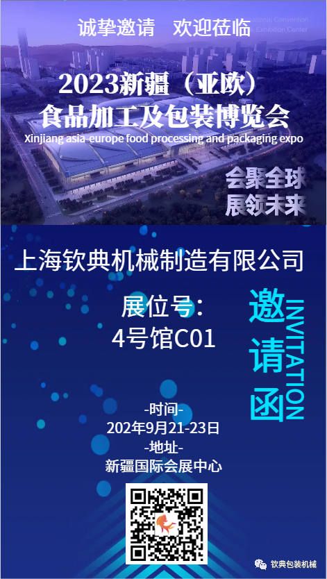 上海欽典機(jī)械制造有限公司欽典機(jī)械2023年新疆亞歐食品加工及包裝博覽會(huì)