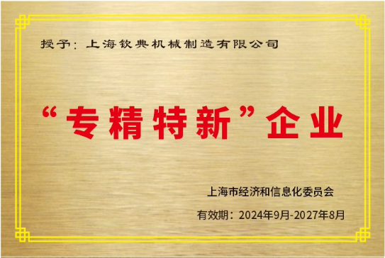 《上海欽典機(jī)械制造有限公司榮獲 “專精特新” 企業(yè)稱號(hào)》