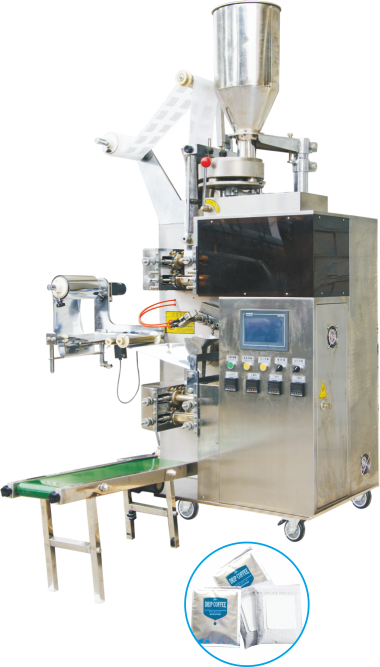產(chǎn)品特點:本機(jī)是一種新型熱封式,多功能全自動袋泡茶飲品包裝設(shè)備。該機(jī)的主要特點是內(nèi)外袋一次成型,避免了人手與物料的直接接觸。內(nèi)袋為掛耳咖啡專用濾紙。